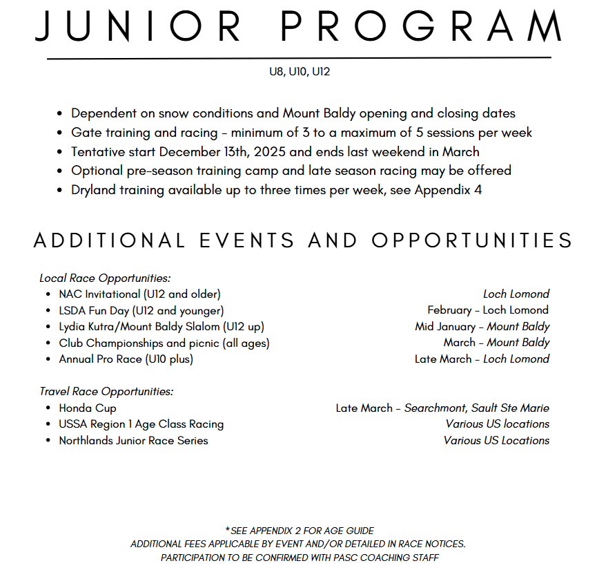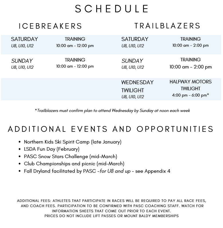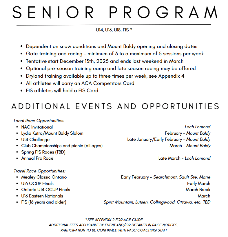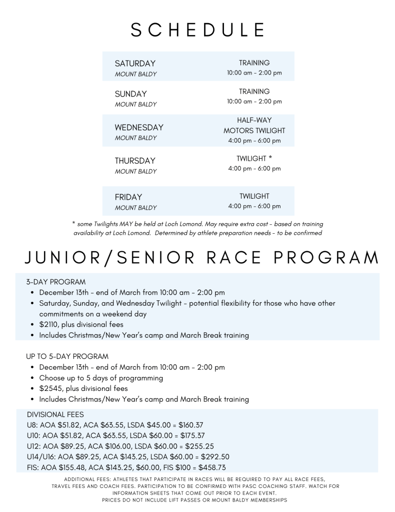 ***Additional fees applicable by event and/or detailed in race notices. Participation to be confirmed with PASC coaching staff